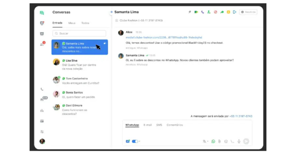 In addition, JivoChat can be integrated with WhatsApp Business, Facebook, Instagram, and Telegram. It also features an AI Agent that automates repetitive processes, significantly reducing service time and freeing up your team for higher value-added activities.